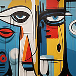 Papel de parede Peça de arte colorida com diferentes rostos