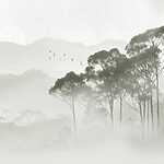 14.60 €8.76 €Papel de parede Aguarela de árvores e pássaros a voar sobre uma floresta com nevoeiro