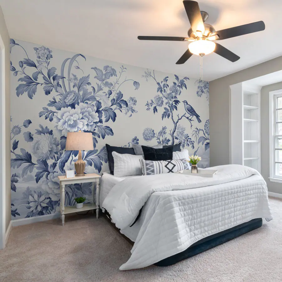 Papel de parede Desenho floral azul e branco