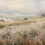 Papel de parede Pintura de um campo de relva e de um rio