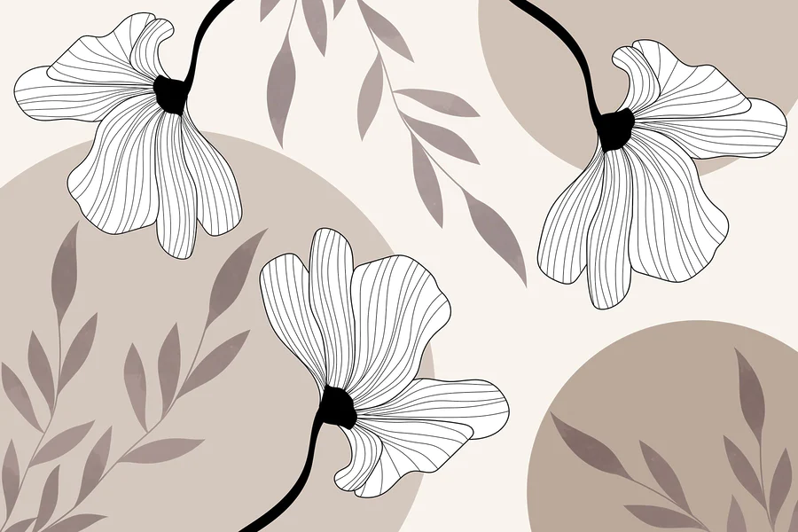 Papel de parede Desenho artístico de linhas florais delicadas