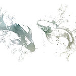 Papel de parede Dois peixes com flores e folhas