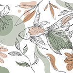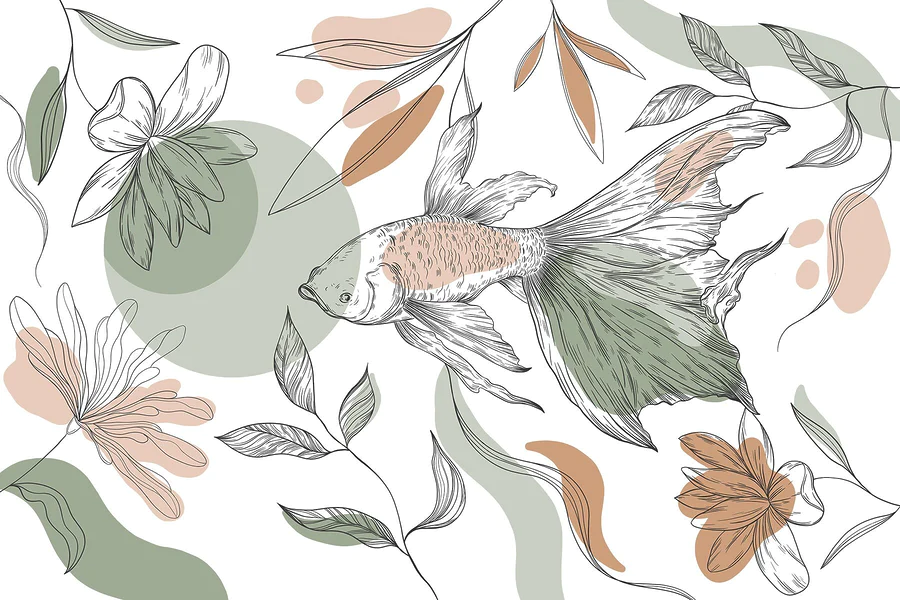 Papel de parede Peixes e plantas sobre um fundo branco