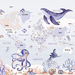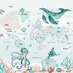 Papel de parede Mapa do mundo com animais marinhos