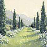 Papel de parede Pintura de uma paisagem com árvores e flores