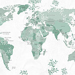 Papel de parede Mapa do mundo com folhas verdes
