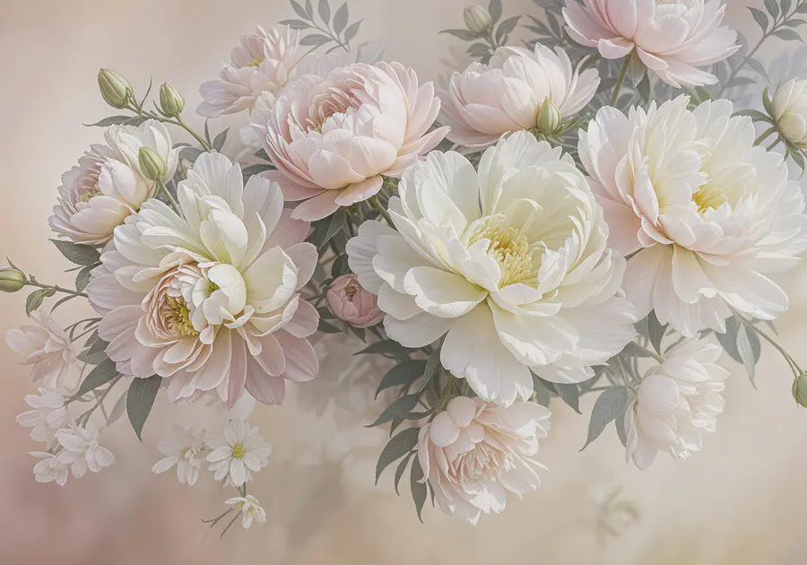Papel de parede Grupo de flores brancas e cor-de-rosa