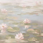 Papel de parede Água com nenúfares e flores cor-de-rosa