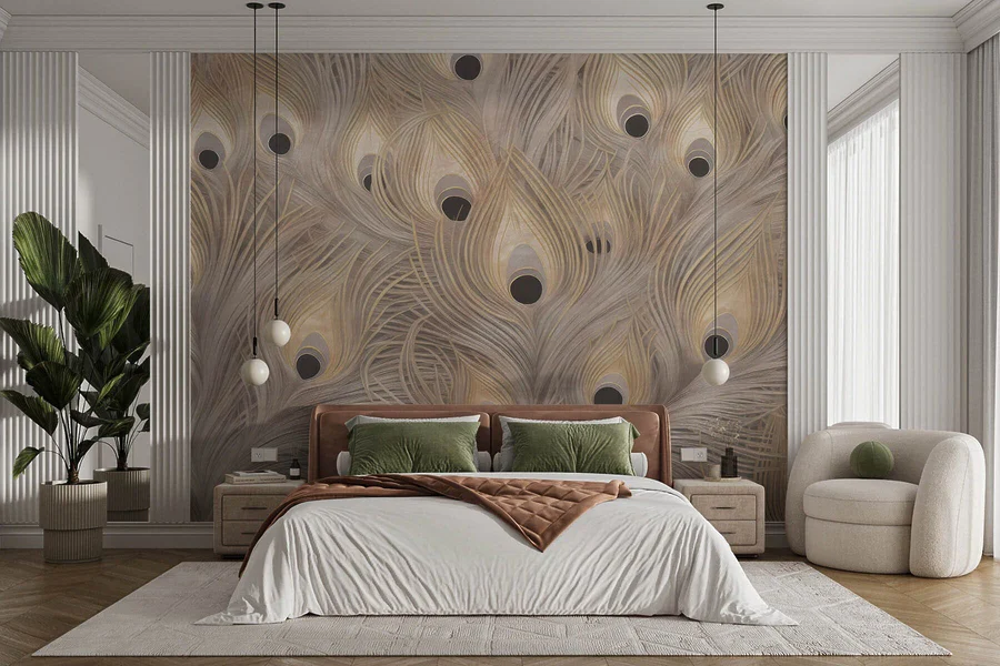 15.12 €8.31 €Papel de parede Pavão branco com olhos azuis