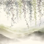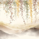 Papel de parede Pintura de uma paisagem com nevoeiro e folhas