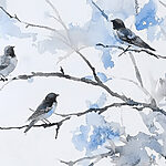 Papel de parede Grupo de pássaros sentados num ramo de árvore